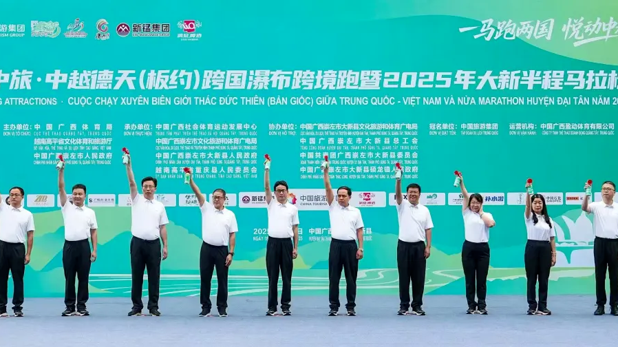 5月18日,中旅·中越德天(板約)跨國瀑布跨境跑暨2025年大新半程馬拉松正式開跑,本次賽事是由中國廣西壯族自治區(qū)體育局、越南高平省文化體育和旅游廳、中國廣西崇左市人民政府主辦,是在中國首個跨境旅游合作區(qū)——中越德天(板約)瀑布跨境旅游合作區(qū)舉辦的廣西首個跨境馬拉松賽事,賽事吸引了來自全國各地乃至國際的跑步愛好者近3000人參與,共同助力這場融合自然風光與跨境文化的體育盛事。