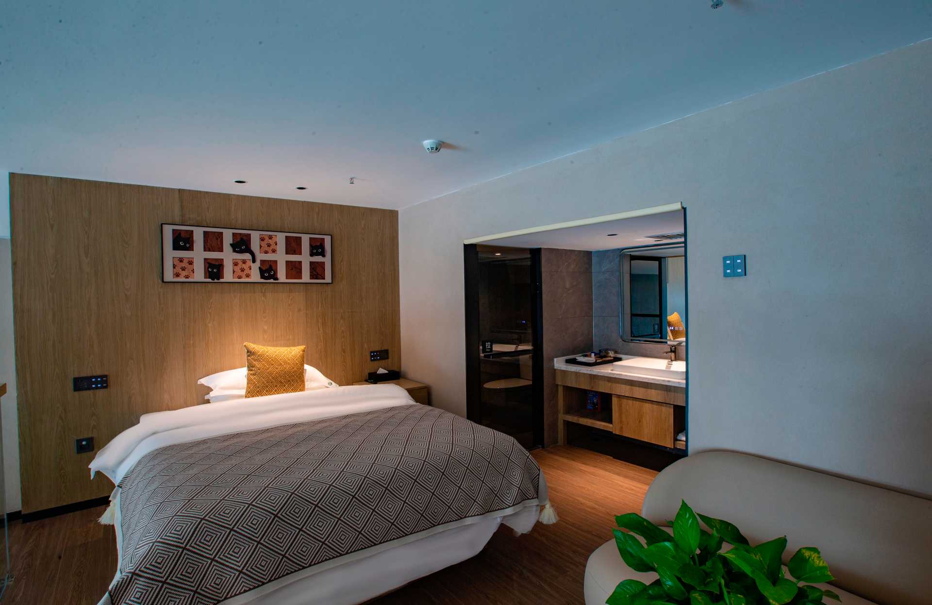 2、酒店整體軟裝沿襲自然風(fēng)格,搭配色彩簡潔的木制家具,室內(nèi)布藝多為棉麻材質(zhì),沒有華麗的裝飾,也能讓房間溫馨又舒適,部分家庭房配備浴缸,且具備親子游樂設(shè)施;