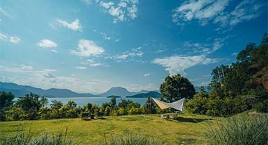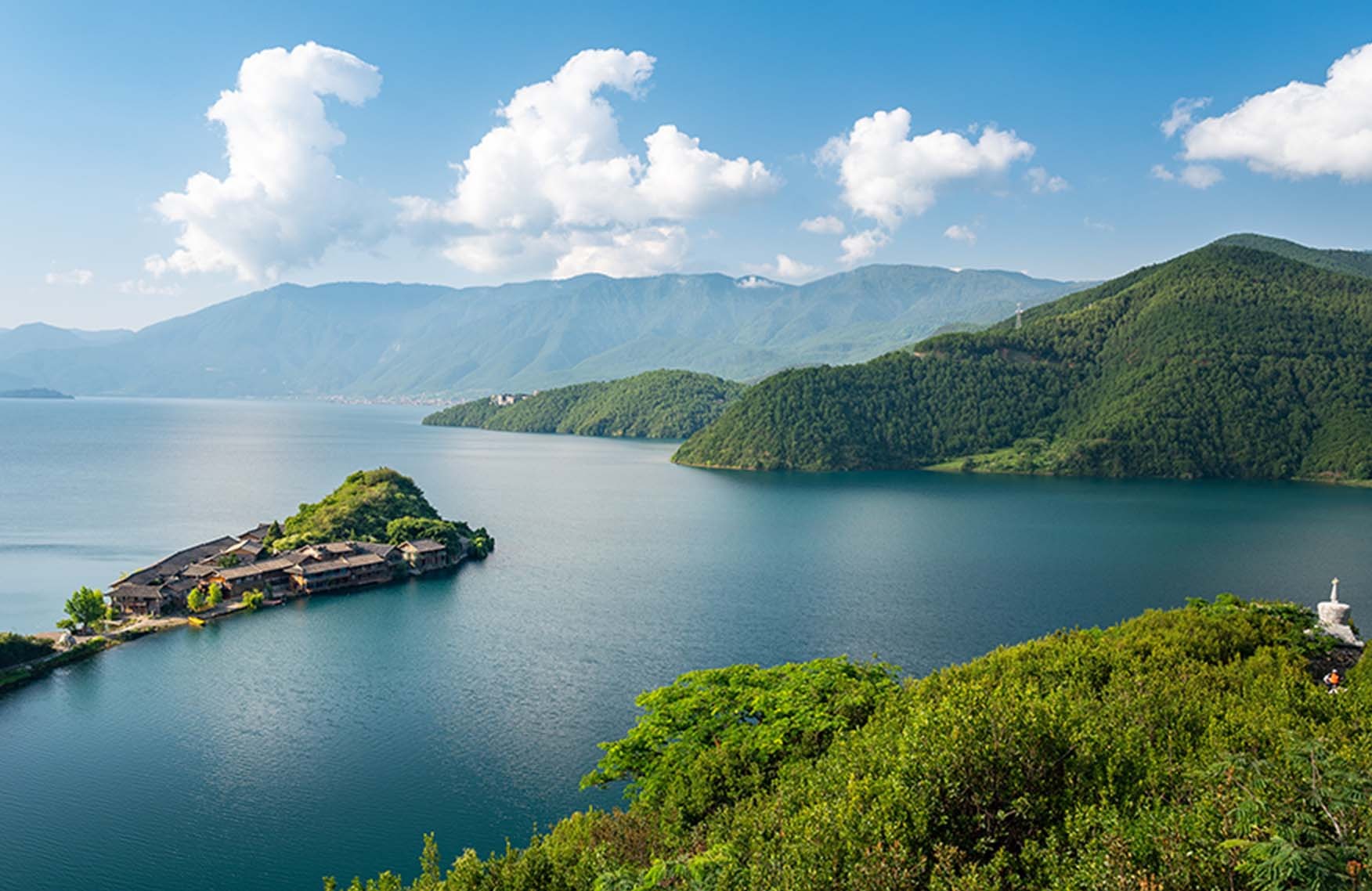 瀘沽湖面積50多平方千米,海拔2690米,湖水清澈蔚藍(lán),被譽(yù)為高原明珠。湖中有五個(gè)全島、三個(gè)半島和一個(gè)海堤連島,形態(tài)各異,翠綠如玉。湖的西北面,是摩梭人的格姆女神山;湖的東南面,與草海連接,淺海處茂密的蘆葦隨風(fēng)蕩漾,蔟蔟的花草迎風(fēng)招展;湖周,茂密的原始森林里珍稀動物出沒其間,給人幾分畏懼,幾分野趣;湖畔,阡陌縱橫,田園萬頃,人們?nèi)粘龆?,日落而息,木摞房舍,炊煙裊裊,村寨牧歌陳陳,漁火點(diǎn)點(diǎn)。一派景象萬千的農(nóng)家農(nóng)園,令人流連忘返。
